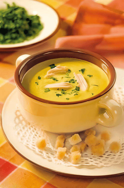 Vegetable cream soup on chicken broth is a harmonious blend of rich chicken broth and tender, velvety vegetables. The origins of such a dish can be found in European cuisine, where the traditions of creamy soups are valued for their refined taste and nutrition. Thanks to the use of chicken broth, the soup acquires a soft, warming hue, while cream adds tenderness. White pepper gives a slight spiciness, and butter completes the composition with a velvety texture. This versatile dish is suitable for both a light lunch and dinner; it can be served with crispy bread or herbs for freshness. Such soup is an ideal choice on a cool day; it brings coziness and warmth while filling the home with the aroma of home cooking.