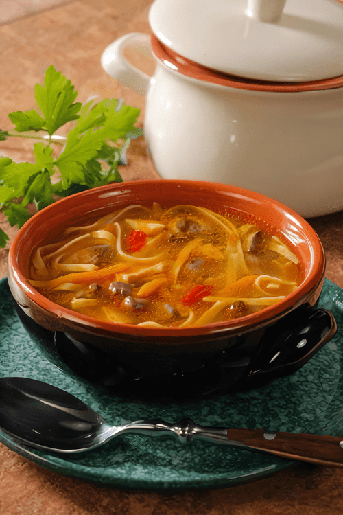 Noodle with chicken liver is a cozy, warming dish of European cuisine that combines the tenderness of offal and the richness of aromatic chicken broth. The origins of this recipe trace back to traditional home kitchens where the simplicity of ingredients transformed into exquisite flavor. Sautéed over high heat, chicken liver retains its juiciness, complementing soft noodles and a rich broth enriched with a special dressing. This dish is perfect for a family dinner or a cozy evening, providing warmth and rich taste. It can be served as a standalone dish or accompanied by fresh bread and greens to enhance the flavor nuances.