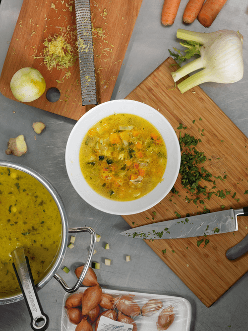 Minestrone with lime is a sunny Italian soup that surprises with its brightness and freshness. This dish originates from the peasant cuisine of Italy, where the seasonality of ingredients and their natural taste are valued. In this version of traditional minestrone, the sweetness of pumpkin, the freshness of zucchini, and aromatic fennel combine, while lime adds a zesty tang that makes the flavor extraordinarily lively. The vegetables are sautéed in creamy butter, absorbing its tenderness, while chicken broth gives the soup richness. The lightness and harmony of the ingredients make this minestrone an ideal choice for those who love a balance of freshness and warming depth. Serving with lime zest and parsley completes the composition with bright notes. This soup is perfect as a light lunch or as part of an exquisite Mediterranean-style dinner.