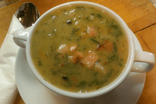 Pea soup with smoked ribs and bacon