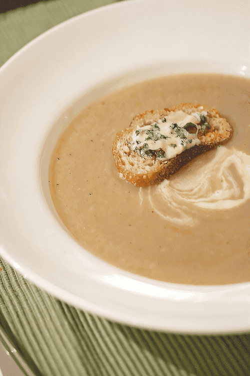 Parsnip puree soup with leek and parsley is an exquisite representative of European cuisine, revealing the delicate and slightly sweet flavor of parsnip, harmoniously complemented by the softness of leek and the freshness of parsley. Historically, parsnip was used in cooking long before potatoes appeared, and its velvety texture makes it an ideal ingredient for creamy soups. Lemon zest adds a subtle citrus note to the dish, while freshly ground black pepper finishes the flavor composition with a light spiciness. This soup warms wonderfully in cool weather and can be served as a light lunch or an elegant first course at dinner. Serving it with a drizzle of olive oil and a splash of lemon juice adds completeness and sophistication to the dish.
