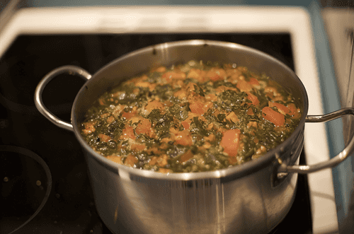 Pour a little kefir into each plate, add greens and wheat croutons. If you forgot the kefir, you can add a piece of lemon.