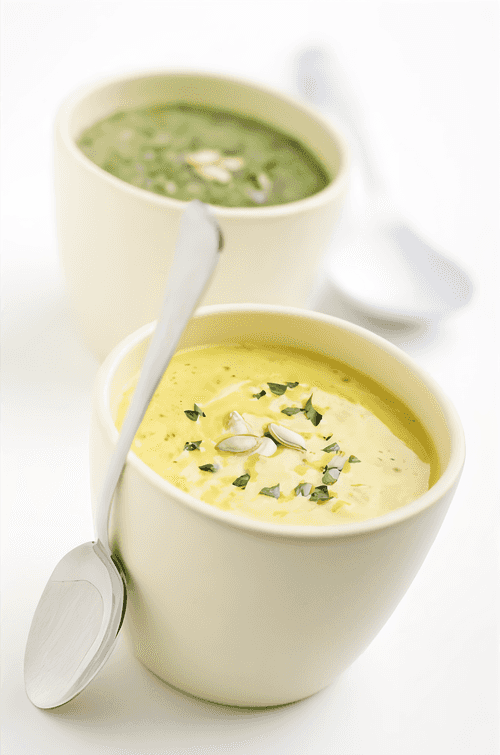 Place half of the vegetables in a blender and add 2 cups of broth. Blend until pureed. Repeat the same with the remaining vegetables and broth.