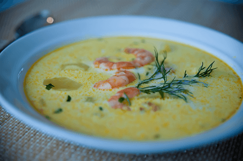 Cheese soup with shrimp and greens is a true Mediterranean delicacy that combines the rich flavor of melted cheese with the tenderness of seafood. This recipe is inspired by coastal regions where fresh shrimp and aromatic herbs are an integral part of the cuisine. The velvety texture of the soup smoothly transitions from creamy cheese to the spiciness of garlic and spices, offering a unique gastronomic pleasure. The addition of fresh greens gives the dish lightness and freshness. It is perfect for a cozy family dinner or a festive lunch, highlighting the flavors of seafood and cheese in an elegant, warming combination. Served hot with pink shrimp that reveal their flavor under the influence of rich broth.