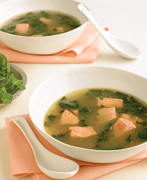Salmon in green broth with curry is a refined blend of Mediterranean flavors with Asian notes. This recipe captures the aromas of fresh herbs, citrus fruits, and spicy spices, creating a harmonious balance between spiciness and freshness. The thick green broth enriched with lime, spinach, cilantro, and basil envelops pieces of tender salmon, giving them a rich yet mild flavor. The origins of the dish can be found in the combination of Mediterranean and Indian cuisines where curry spices perfectly highlight the natural sweetness of the fish. This dish is ideal for a light lunch or dinner, especially when accompanied by fragrant rice or fresh baguette. A wonderful choice for connoisseurs of delicate yet expressive flavors!