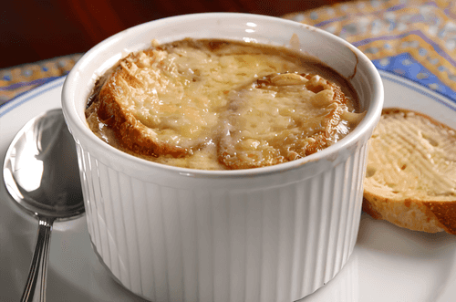 French onion soup is a symbol of Parisian gastronomy, embodying simplicity and refined taste. It originated in the Middle Ages when peasants made it from available ingredients. The delicate caramelized sweetness of onions, the deep aroma of white wine, and the richness of chicken broth create a warming harmony. Crispy baguette and baked Gruyère add a rich texture and appetizing golden crust. This soup is perfect for cozy evenings or festive dinners, evoking nostalgia for old French bistros. It not only nourishes but also provides a sense of home comfort, revealing the elegance of French cuisine in one bowl.