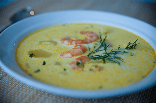 Cheese soup with shrimps