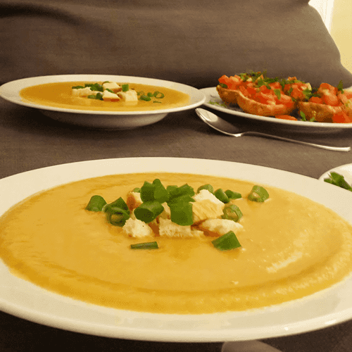 Lentil puree soup is a warming and aromatic Mediterranean soup that has won the hearts of gourmets worldwide. Its origins trace back to traditional cuisine where simple yet nutritious ingredients are transformed into exquisite dishes. Red lentils give the soup a softness and rich nutty flavor, while fresh vegetables—onion, carrot, garlic, tomatoes, and ginger—enhance its depth of aromas. Baked pieces of white bread add textural contrast, making the dish not only nourishing but also appetizing. This soup is perfect for cool evenings and pairs wonderfully with herbs and a drizzle of olive oil. The ease of preparation and richness of flavors make it an essential part of cozy home meals.