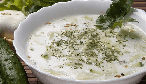 Summer kefirnik is a refreshing dish of Russian cuisine, perfect for hot days. Its roots trace back to the traditions of simple and light summer soups that nourish without overwhelming the body. The base is kefir mixed with mineral water, creating a delicate sour milk flavor. Added cucumbers and radishes provide freshness and a crunchy texture, while walnuts add a light nutty note. Garlic and spices enhance the flavor's expressiveness, and herbs give it aromatic completeness. A drop of refined oil adds sophistication. Summer kefirnik is served chilled; it refreshes, quenches thirst, and satisfies while remaining light. This soup is a true summer find that recalls the traditions of village cuisine when simple yet delicious dishes were desired on hot days.