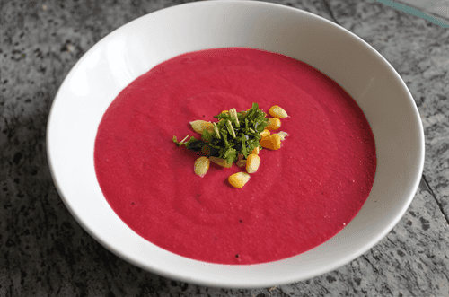 Place the contents of the pan in a blender, add beetroot, and puree. Return the soup to the heat and stir in the coconut milk.