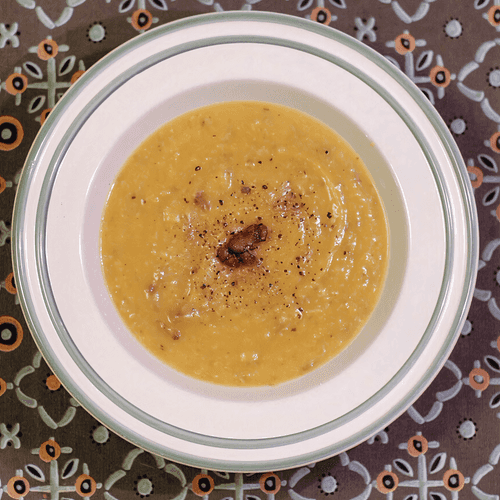 Pumpkin puree soup with oyster mushrooms and marjoram is a true embodiment of autumn on a plate. Its soft, velvety texture combines the sweetness of pumpkin with the spiciness of herbs, creating a harmony of flavors. The oyster mushrooms add depth and a light mushroom note, while marjoram refreshes the composition with a subtle herbal aroma. This soup is not just a dish; it's comfort in every sip that warms the soul and inspires leisurely conversations at the family table. Its roots can be traced back to European cuisine, where autumn vegetables and herbs form the basis of many warming dishes. It pairs perfectly with crispy toasts or fresh baguette, adding textural variety to the delicate puree. This dish is an ideal choice for those seeking not only taste but also an atmosphere of coziness and warmth.