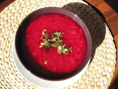 Summer borscht is a refreshing variation of classic Russian borscht, perfect for warm days. This light, aromatic soup combines the sweet richness of beets, the freshness of cabbage, and the spiciness of herbs to create a harmonious and rich flavor. Historically, borscht has been an integral part of Russian cuisine, but its summer version is characterized by particular lightness and softness. Made with chicken broth, it gains additional depth of flavor while tomato paste adds a slight tanginess. Summer borscht pairs well with sour cream and fresh bread, highlighting its velvety texture. A wonderful choice for lunch, it provides a feeling of fullness without being heavy.