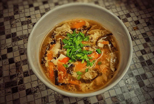 Chinese hot and sour soup with tofu is a true embodiment of the centuries-old culinary tradition of the Middle Kingdom. Its rich, deeply balanced flavor combines the spiciness of white pepper, the tanginess of black rice vinegar, and the delicate texture of tofu. Historically, this soup originated as a simple yet nourishing dish that warms the soul and body. Fresh vegetables and mushrooms give it a unique aroma, while beaten egg makes the consistency tender and silky. Sesame oil completes the flavor profile with a light nutty note. This soup is not just food but a symbol of Chinese philosophy of balance: it unites the fire of spices and the coolness of vinegar, the tenderness of tofu and the firmness of meat. It is traditionally served hot to enjoy the full unfolding of flavors.
