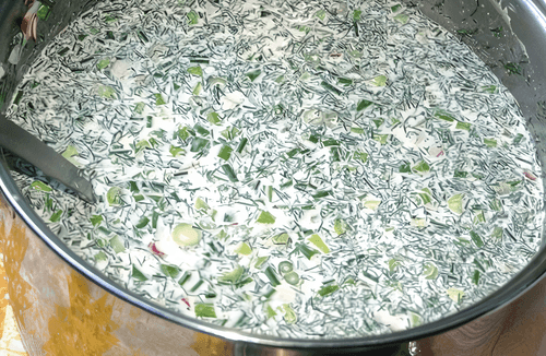 Okroshka on chicken broth with radish is a refreshing and light cold soup perfect for summer days. This version of the traditional Russian dish features the delicate taste of chicken broth harmonizing with crunchy vegetables and spicy radish.
