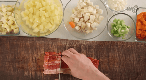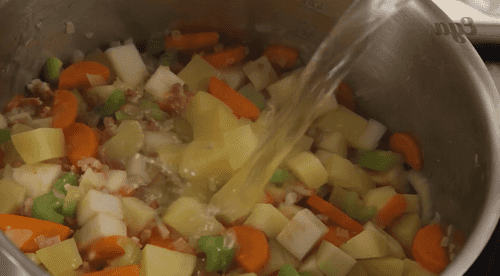 Add the remaining root vegetables, mix, and fry for another two to three minutes to let the vegetables absorb the flavors of the bacon and each other.