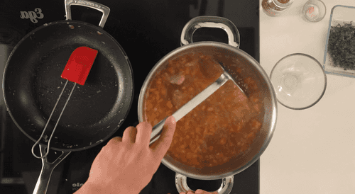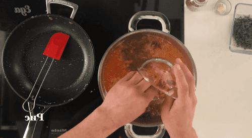 Add rice to the pot and continue to cook.