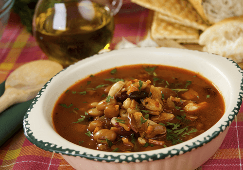 Bean soup with chicken and peas