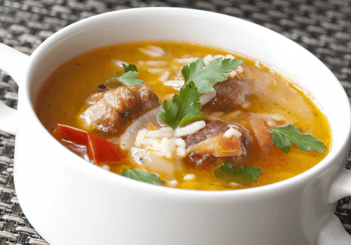 Chicken soup with rice and cheese is a cozy and nutritious dish that has gained popularity in European cuisine due to its tenderness and rich flavor. This soup harmoniously combines the softness of chicken fillet, the creamy hint of melted cheese, and the light texture of rice, while fresh vegetables add brightness and aroma. Historically, such soups emerged as simple, hearty dishes that are easy to prepare from accessible ingredients. It can be served as a main dish in cold weather or as a light yet nutritious lunch. Its tender texture and creamy taste make it especially appealing for family dinners.