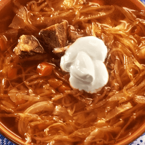 Red borscht is a traditional Russian dish infused with the spirit of home comfort. Its history dates back centuries when tomato paste became available, giving classic borscht a rich reddish hue. Tender meat, aromatic spices, sweet carrots, and sour cabbage create a layered flavor with a pleasant tang. They take a long time to prepare, but the wait is worth it: each sip warms and satisfies. Borscht is often served with rye bread, sour cream, or herbs to enhance its taste. They are perfect for cold days, providing warmth and coziness. This recipe pays homage to Russian culinary tradition where food not only nourishes but also brings people together at the table.