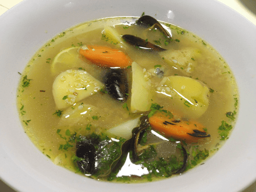 Pike perch soup with White Sea mussels