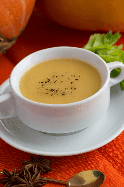 Pumpkin puree soup with tomatoes is a bright and rich dish of Mexican cuisine, combining the sweet taste of pumpkin with the acidity of tomatoes. Its origin is linked to Latin American culinary traditions where vegetables are used to create thick and aromatic soups. This soup features a delicate, velvety texture, and the addition of celery and garlic gives it a deep flavor profile. The taste can be varied by adding a pinch of hot pepper. It is served as a warming dish in cool weather and also as a light lunch or dinner. The finishing touch is freshly ground black pepper that enhances the aroma. The soup pairs especially well with crispy toasts or corn tortillas, making it an ideal option for a cozy home meal.