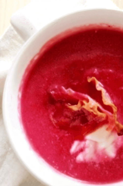 Peel the cooked beetroot and chop it finely. Place it in a pot, add salt and pepper, pour in the kefir, and blend it.