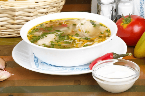 Zama Moldovenească is a traditional Moldovan soup rooted in rural cuisine. It has a rich, deep flavor from slowly cooked rooster broth, aromatic roots, and spicy herbs. A key feature is the addition of rye kvass, giving the dish a pleasant sourness and light fermented note. Hand-made noodles make the soup especially hearty and cozy. This soup not only warms but also has healing properties due to natural ingredients traditionally used for restoring strength. Zama is served hot with parsley and lovage for a fresh aroma. The dish is perfect for family lunches or traditional feasts that appreciate natural flavors and age-old culinary traditions.
