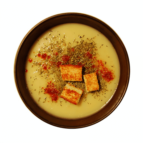 Potato and leek puree soup with croutons is a classic British dish that warms and comforts. Its history roots back to the traditions of simple, nourishing soups that have been popular among the British for centuries. The creamy texture, delicate aroma of leeks, and light garlic notes create a harmonious flavor. Croutons soaked in olive oil and thyme add a crunchy texture and make the dish even more interesting. This soup is perfect for a cozy lunch or dinner, especially in cooler weather. Its mild taste makes it an excellent choice for both adults and children. It is easily digestible and can serve as a base for other variations by adding herbs, spices, or additional ingredients like cheese or smoked bacon.