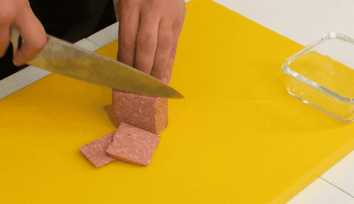 Cut the salami into small cubes.