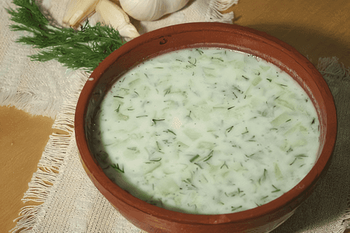 Cold vegetable soup with kefir is a light and refreshing dish from Russian cuisine, perfect for hot summer days. Its roots trace back to traditional okroshka recipes, but this version is simple and minimalist. The delicate fermented milk base of kefir pairs wonderfully with crunchy vegetables—fresh cucumbers and sweet peppers—creating a harmony of flavors. The slight tang of kefir highlights the natural freshness of the ingredients, while salt and sugar add balance. This soup not only cools but also nourishes the body with beneficial substances, supporting digestion and providing a sense of lightness. It can be served chilled, garnished with herbs or spices to taste. Easy to prepare yet surprisingly delicious, this soup makes an excellent choice for a quick summer lunch.