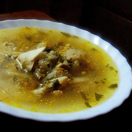 Chicken and wheat groats soup