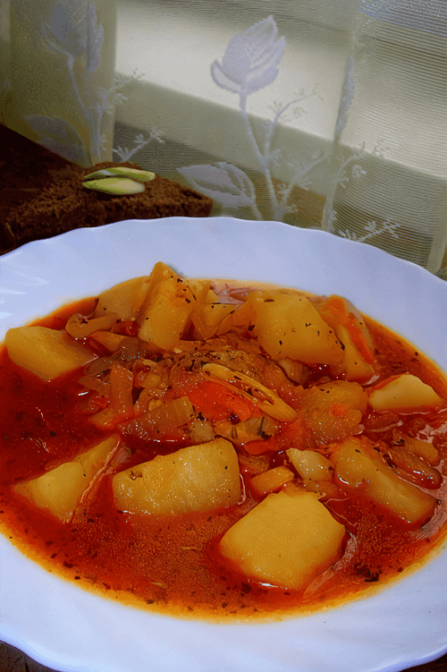 Chicken goulash soup is a fragrant and hearty dish of Hungarian cuisine that combines the traditions of rustic cooking. Its roots go back centuries when shepherds cooked filling soups over a fire using available ingredients. This soup stands out with its bright, spicy flavor thanks to red sweet pepper, paprika, and garlic that give it a rich aroma and mild heat. The chicken meat makes it softer and tenderer while potatoes and carrots add thickness and nourishment. Perfect for cold evenings, it warms and satisfies. Served hot with homemade bread or fresh herbs that enhance its taste. Chicken goulash soup is a harmony of simplicity and rich flavor that transports you to cozy Hungarian taverns.
