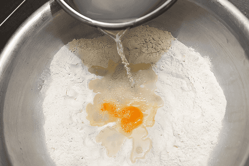 Dissolve salt (20 g) in one and a half glasses of cold water. Pour flour into a basin and crack an egg into it. Gradually pouring in the salt solution, knead the dough. It should be elastic, not too soft, but also not too hard, so all the solution may not be needed. Cover the finished dough with film and leave it for two hours.