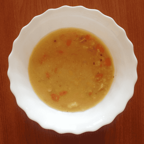 Pea soup with bacon and pork ribs is a hearty and aromatic dish of Russian cuisine that warms the soul and body. Its origins date back centuries when simple yet nutritious ingredients formed the basis of peasant cooking. Peas give the soup thickness and richness, while smoked ribs and crispy bacon add a pronounced meaty flavor. Onions and carrots provide sweet notes, and bay leaves fill it with aroma. This soup is perfect for cold weather when you crave something filling and warming. It is served hot with rye bread or fresh herbs, revealing its rich flavor palette.