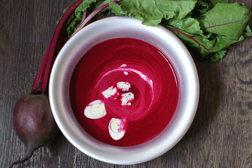 Cold beetroot cream soup with gorgonzola is a refined blend of Russian culinary tradition and modern taste. Beetroot gives the dish a rich ruby hue and a slight sweetness, while the creamy texture makes it velvety and tender. Refreshing cucumber adds lightness to the composition, and gorgonzola with its piquant sharpness adds sophistication. Quail eggs finish off the flavor, adding delicacy to the dish. This soup is perfect for summer days, cooling and satisfying at the same time. It can be served as an appetizer to main courses or enjoyed on its own. The taste is both refreshing and deep, playing with contrasts of sweetness and saltiness, thickness and lightness. Try it — and it will become your favorite among summer dishes!