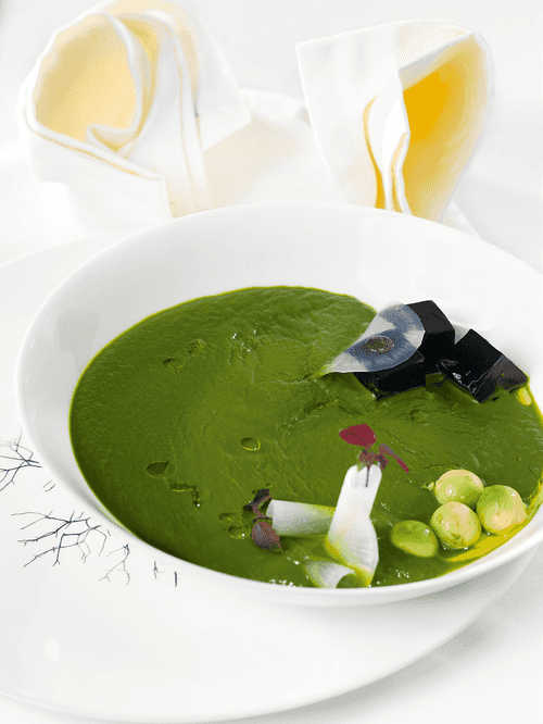 Sorrel soup with red cabbage jelly