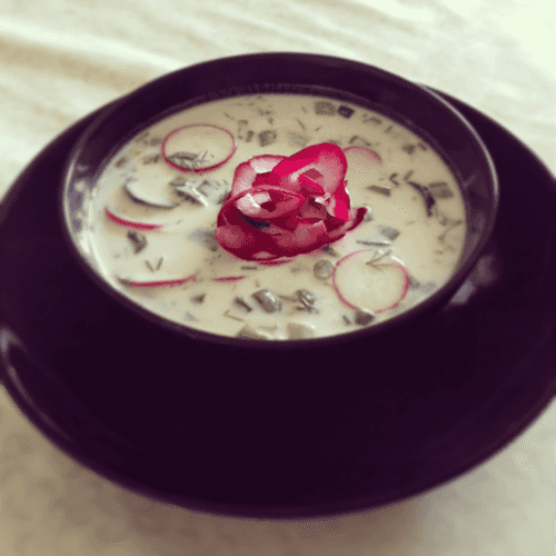 Okroshka with radish on kefir