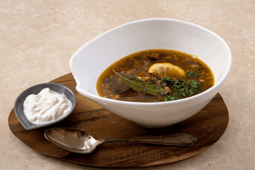 Olive solyanka is a fragrant and rich soup infused with the spirit of European cuisine. Its history traces back to traditional Russian and Eastern European recipes, where meaty, spicy, and sour notes intertwine harmoniously. This dish combines various types of meat, pickles, olives, and black olives that give it a unique flavor with a hint of spiciness. Lemon adds freshness while sour cream provides creaminess, balancing the intensity of flavors. Solyanka is perfect for cozy family dinners or festive gatherings. Its thick texture and rich aroma warm you up and bring pleasure with every spoonful.