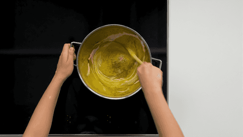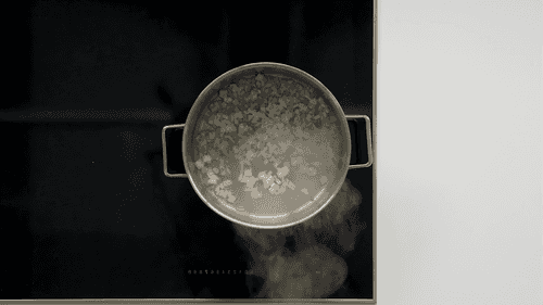 Heat vegetable oil in a pot and sauté the onion until translucent.