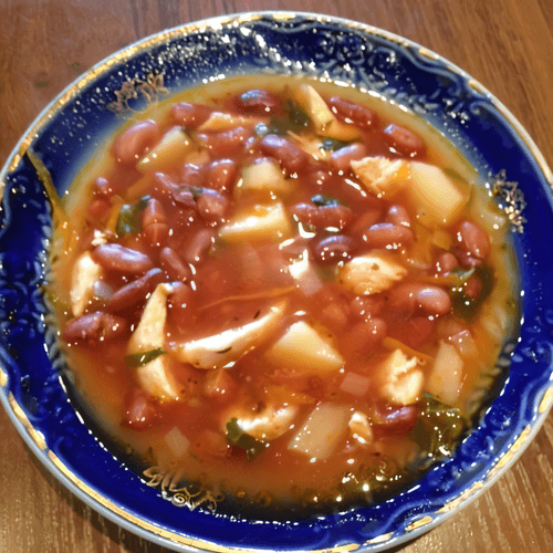Bean soup with chicken is a hearty and comforting dish of Russian cuisine that warms on cold days. Soaked red beans give the soup richness and a slight sweetness. Tender chicken breast makes the flavor soft and balanced, while sautéed vegetables – onion and carrot – add depth to the aroma. Tomato paste and spices like oregano and thyme provide a hint of spiciness and appetizing acidity. Before serving, the soup is garnished with fresh cilantro for freshness and a touch of zest. Perfect for lunch or dinner, it can be served with crusty bread or homemade croutons to enhance its cozy charm. This soup is a simple yet rich-tasting dish that can easily become a favorite in any home.