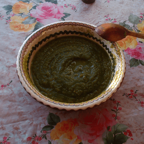 In a blender, puree the stewed vegetables with spinach, adding spinach broth if necessary.