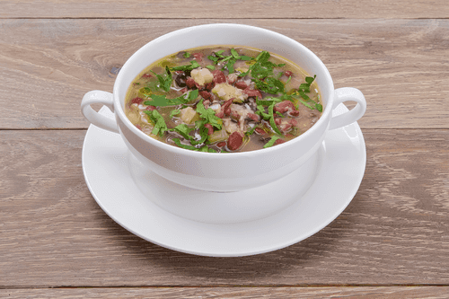 Bean and zucchini soup is a true embodiment of simplicity and sophistication in European cuisine. This recipe combines the tender texture of red beans, the freshness of zucchini, and the spiciness of celery to create a harmonious and rich flavor. Historically, bean dishes were widely used in Mediterranean cuisine due to their nutritional value and richness in plant protein. The subtle aroma of oregano complements the composition while garlic adds a spicy depth. The light mashing of the soup gives it a velvety texture while maintaining the integrity of the ingredients. This soup is an ideal choice for a light yet hearty lunch that warms and satisfies. Serving it with olive oil and fresh parsley makes it even more aromatic and appetizing.