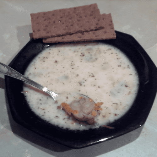 Chicken broth with mushrooms and melted cheese is a cozy dish of European cuisine that warms the soul and delights with its delicate flavor. Its roots trace back to traditional soups where the richness of the broth combines with the earthy depth of mushrooms and the creamy softness of melted cheese. A light aroma of bay leaf and pepper enhances the taste, while beans add extra texture. The soup has a velvety consistency thanks to the melted cheese that unfolds into a rich creamy delight. It's an excellent dish for cool days when you crave something nourishing yet gentle, harmoniously blending classic ingredients. It can be served with crispy bread or fresh herbs to enhance the flavor palette. Simple to prepare yet elegant – it suits both a cozy family dinner and a light lunch.
