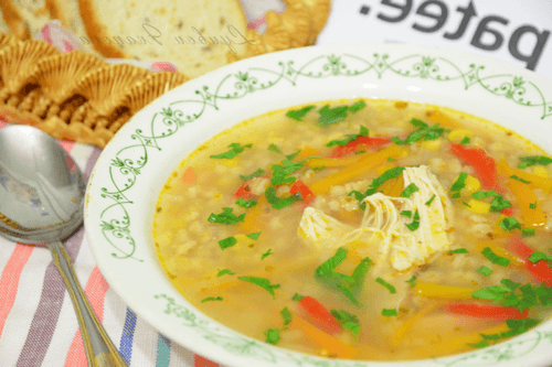 Corn and sweet pepper soup is a bright and aromatic dish of American cuisine that combines the tenderness of chicken broth, the sweetness of corn, and a hint of spiciness from the pepper. This soup has a rich flavor where sweet and spicy notes intertwine harmoniously. Barley adds a pleasant texture and makes it more filling. Historically, such soups were popular in rural areas of the USA where fresh vegetables and poultry were staples. It warms wonderfully on cool days and delights with its sunny hue. With its mild taste and natural ingredients, it can be served as a light lunch or dinner, complemented by fresh bread. It's an ideal option for those who love comforting and nutritious food.