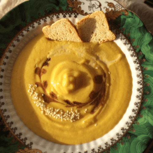 Pumpkin puree soup with cauliflower and ginger is a delicate and warming dish of European cuisine that embodies coziness and warmth. Its roots can be found in the traditions of autumn and winter soups when juicy pumpkin becomes the main ingredient of the season. The velvety texture is achieved through careful processing of vegetables, while cream adds softness and richness. Spicy ginger adds a touch of zest, making the flavor deeper and more expressive. This soup is perfect for both a light dinner and a festive table, especially if garnished with drops of balsamic vinegar and sesame seeds. It not only warms but also brings true gastronomic pleasure, delighting both aesthetes and lovers of healthy and exquisite flavor combinations.