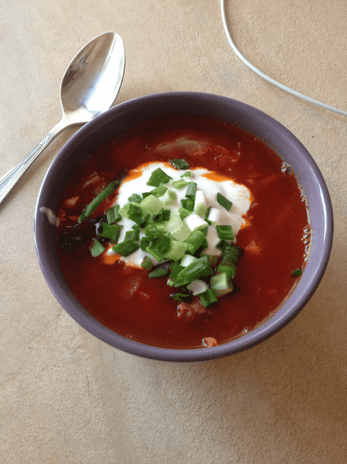 Beef borscht is a fragrant and hearty dish of Ukrainian cuisine that warms and nourishes. Its history roots back to ancient Slavic traditions where borscht served as a symbol of home comfort and hospitality. The taste of this borscht harmoniously combines the sweetness of beets, the slight acidity of tomatoes and vinegar, as well as the richness of beef broth. Cabbage adds freshness while potatoes make the dish filling. Each component plays its role in creating a rich and layered flavor. Borscht is traditionally served hot with sour cream and fresh herbs, making it even more flavorful. It is suitable for both everyday dinners and festive tables, awakening appetite and providing a sense of home comfort.
