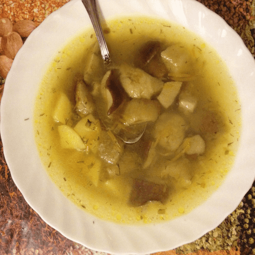 Mushroom soup is a true gift of Russian cuisine, infused with the aroma of the forest and the warmth of home. Dried white mushrooms reveal their rich essence in the broth, giving the soup a deep flavor with subtle woody notes. Onions and carrots sautéed in butter create a gentle sweetness, while potatoes add heartiness. Noodles make the texture more tender, and sour cream adds exquisite creaminess when served. This soup is a symbol of coziness, traditionally prepared in cold weather to warm and nourish. It is perfect for lunch or dinner and pairs wonderfully with rye bread and fresh herbs. It intertwines simplicity and sophistication, making it a beloved dish on the Russian table.