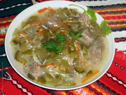 Rassolnik with celery is a hearty soup where the salty taste of cucumbers, the richness of beef broth, and the freshness of celery harmoniously intertwine. The origins of this dish trace back to traditional Russian cuisine, where pickles were often used to give soups a special flavor. Barley adds textural depth, while sautéing in butter softens and enriches the taste. Rassolnik warms you up and satisfies hunger, especially in cold weather. This soup pairs perfectly with sour cream, adding tenderness to every sip. A great choice for those who appreciate traditional flavors in a new interpretation!