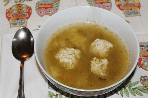 Finely chop the cucumbers (they can be replaced with pickled black olives) and add them to the soup along with the meatballs or right after.