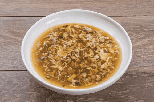 Chinese hot and sour soup is an iconic dish of Chinese cuisine, renowned for its rich flavor and balance of acidity and spiciness. Its roots trace back to the Sichuan region, known for its spicy dishes. The base of this soup is chicken broth, complemented by fragrant shiitake mushrooms, crunchy bamboo shoots, and tangy black rice vinegar. White pepper and soy sauce add depth of flavor, while cornstarch provides a velvety texture. The finishing touch is egg white, which makes the broth tender and silky. This soup not only warms and offers gastronomic pleasure but is also considered healthy due to its rich protein and antioxidant content. Ideal in cold weather as well as a restorative dish after a long day.